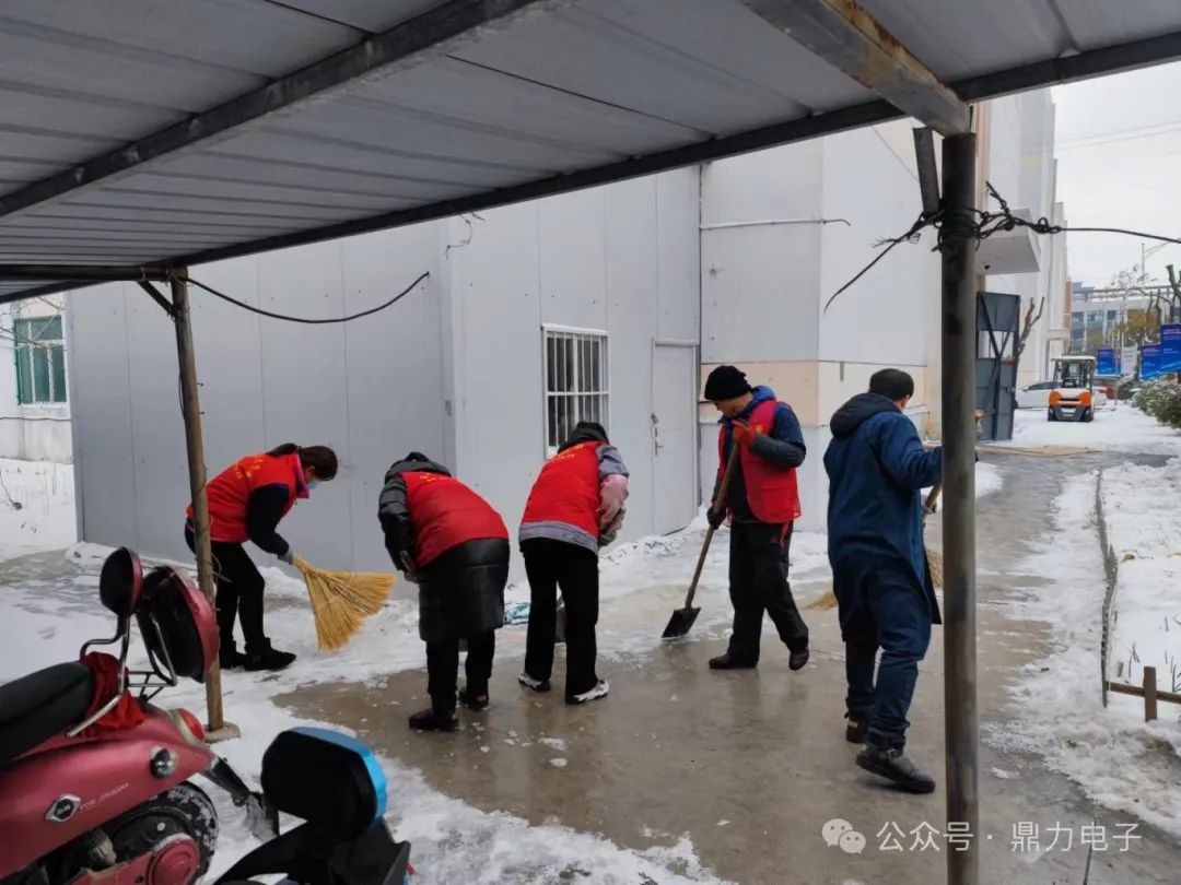 2024年的第一場(chǎng)大雪如約而至,銀裝素裹的美景給大家?guī)?lái)欣喜的同時(shí),為及時(shí)清除積雪,確保員工上下班出行方便,中共蚌埠鼎力電子科技有限公司支部開(kāi)展掃雪除冰志愿者活動(dòng)。