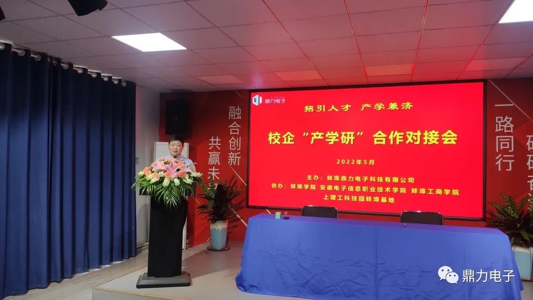 為響應(yīng)國家關(guān)于加強學(xué)校和企業(yè)合作的號召,充分發(fā)揮校企雙方優(yōu)勢,2022年5月14日下午在蚌埠鼎力電子科技有限公司三樓會議室,與蚌埠學(xué)院、安徽電子信息職業(yè)技術(shù)學(xué)院、蚌埠工商學(xué)院,舉行了隆重的校企合作簽約儀式。