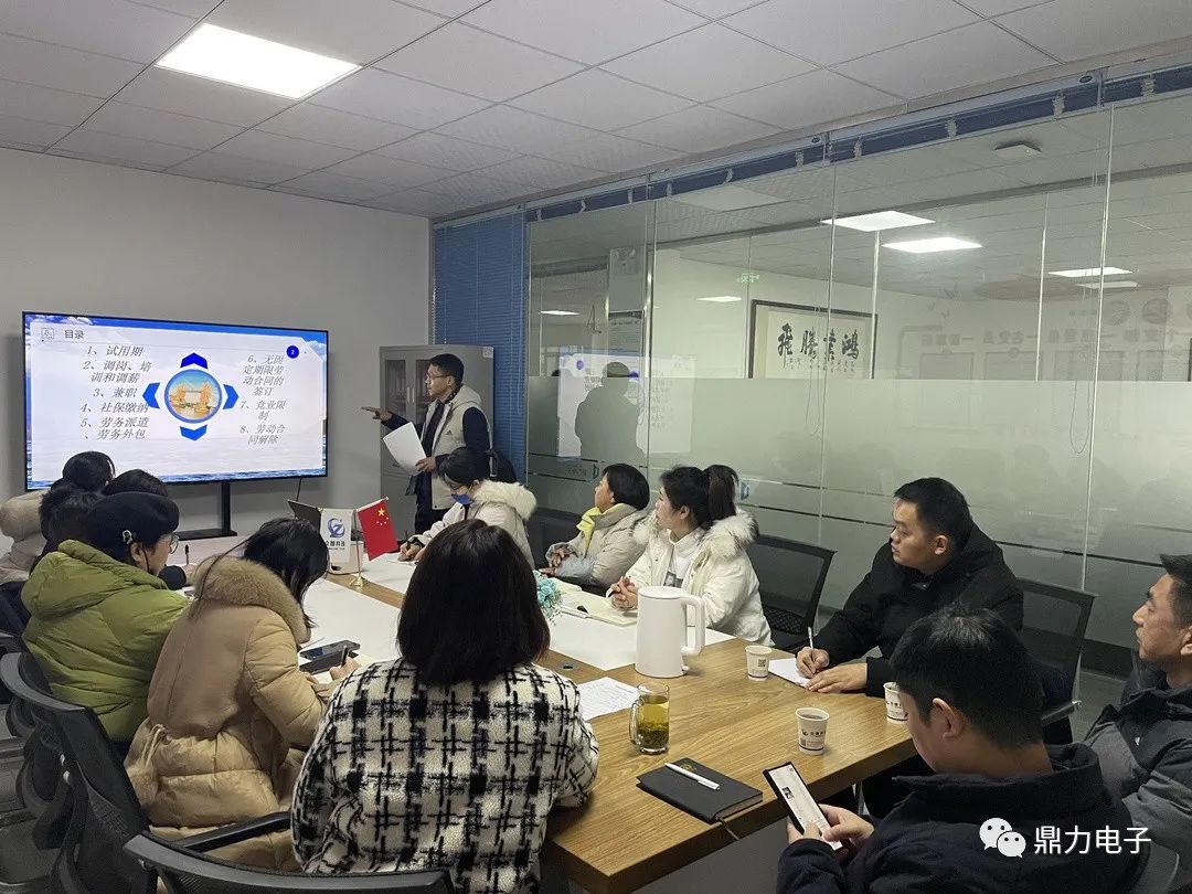 2021年12月24日,蚌埠鼎力電子科技有限公司邀請安徽大友昱達律師事務所楊寶根律師、許曉冬律師,為公司管理層進行勞動用工管控風險防范知識培訓。